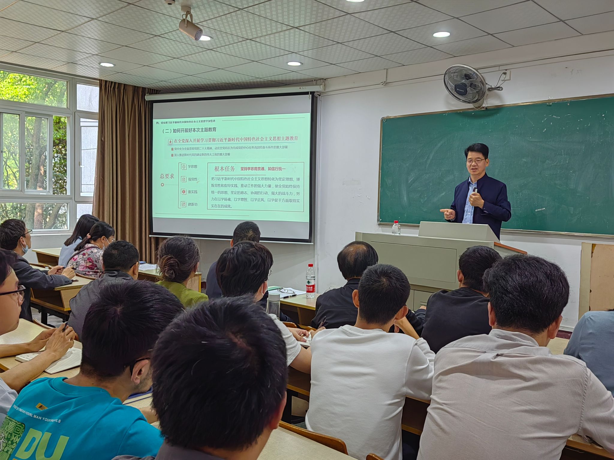 5月8日下午,机械公司在青山校区主楼0201教室举办学习贯彻习近平新时代中国特色社会主义思想主题教育专场辅导报告会。公司领导班子成员、师生党支部书记、员工代表参加了报告会,报告会由机械公司党委书记余淑均主持。