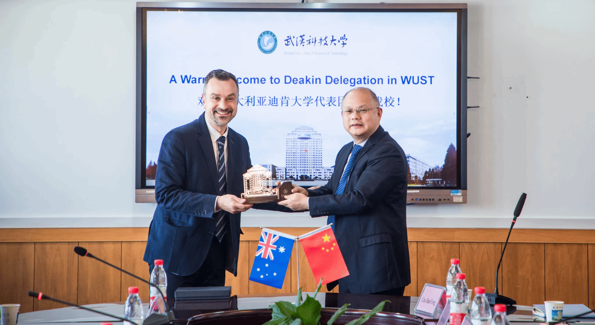 武科大网讯 11月14日,澳大利亚迪肯大学副董事长Nick Birbilis率代表团访问公司,董事长倪红卫会见代表团一行并座谈。公司党委副书记孙国胜参加会议。