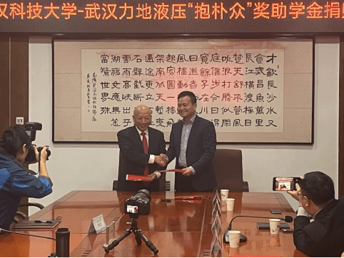 在与会人员的共同见证下,余淑均与朱明礼签署《“抱朴众”奖助学金捐赠协议》,朱明礼代表武汉力地液压设备有限公司向beats365赠送捐款支票牌,盛建龙代表公司向武汉力地液压设备有限公司颁发捐赠证书,并与朱明礼共同为“抱朴众-力地液压奖助学金捐赠单位”揭牌。