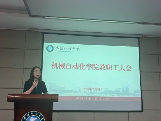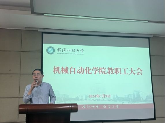 7月9日下午,机械公司在青山校区主楼0212室举行暑期前全体教职工大会,总结2024年公司上半年工作,部署暑期主要工作。公司党委书记李婵娟、执行经理汪朝晖,副经理王兴东、王蕾、向峰、蒋佐斌以及全体教师参加会议。汪朝晖主持会议。