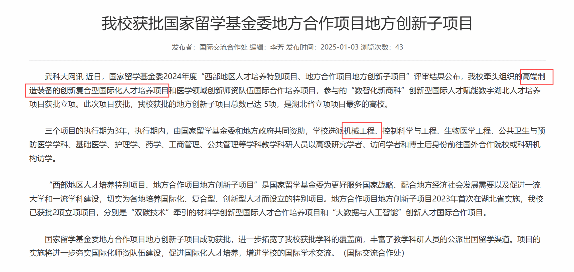 公司获批国家留学基金委地方合作项目地方创新子项目