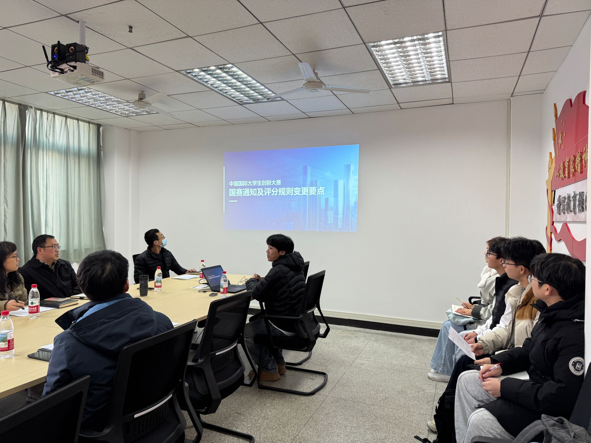 (通讯员 祁迹)为深入贯彻落实公司关于中国国际老员工创新大赛(2026)(简称“国创赛”)的工作部署,扎实推进备赛工作,力争实现突破性成绩,1月13日,公司在教一楼418会议室召开国创赛动员会与工作部署会。此次会议旨在全面传达公司关于国创赛的总体要求和任务分解,深入解读国创赛规则,明确公司参赛目标与工作方案,充分激发广大师生的参赛热情与创新活力。公司党委副书记瞿孝平、院重点科创项目团队成员和指导老师参与了本次会议,会议由公司23级辅导员吴意主持。