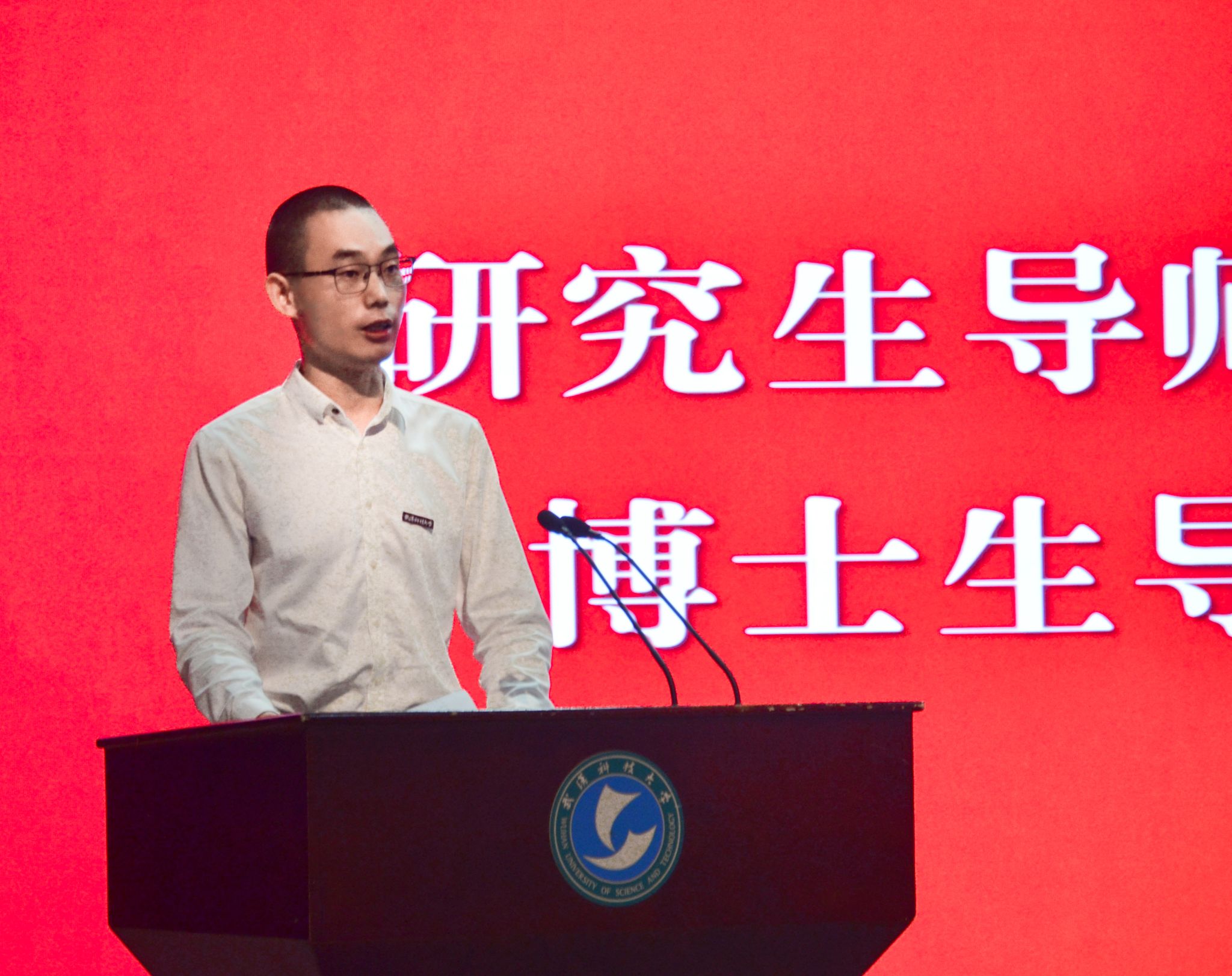董事长倪红卫代表公司向2023级研究生新生表示热烈欢迎,祝贺大家成为承载荣光的武科大人。