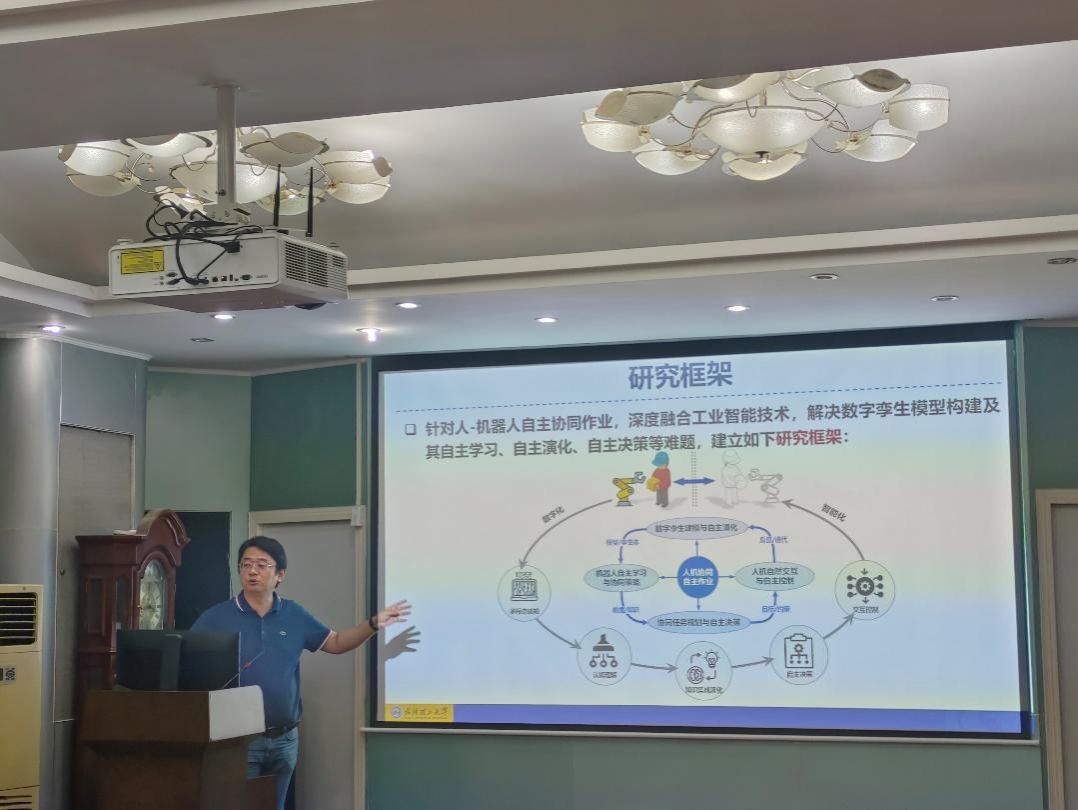 报告中,徐文君教授深入剖析了人机协同制造面临的瓶颈,指出实现人机自主协同作业是智能制造系统及智能工厂发展的关键挑战之一,现有数字化建模方法在动态适应性、多学科融合等方面存在不足,影响了人机协同制造的自主性能与合理性。针对这些问题,徐教授介绍了深度融合工业智能技术的研究框架,阐述了如何解决数字孪生模型构建及其自主学习、演化、决策等难题,强调工业智能通过与工业领域知识深度融合,构建自主建模、智能决策和交互新模式,形成“数据—模型—知识”协同机制,为解决实际问题提供新路径。