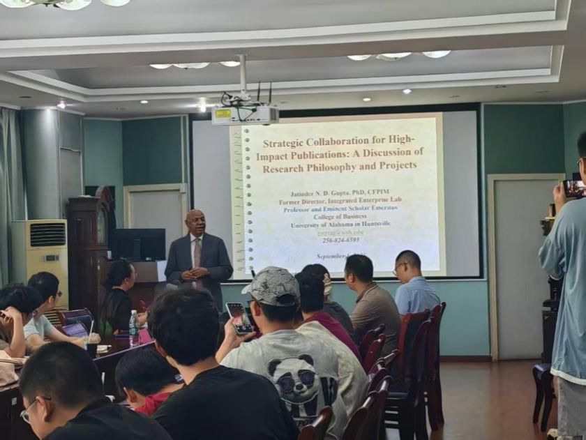 下午三点半,Jatinder (Jeet) N. D. Gupta教授在青山校区机械工程公司四楼会议室作题为“Strategic Collaboration for High-Impact Publications: Research Philosophy and Projects” 的学术报告,报告会由机械工程公司工业系统工程系唐秋华教授主持。