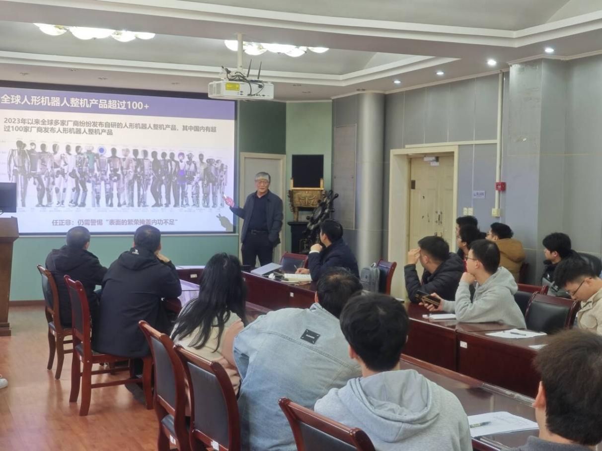 现场交流环节气氛热烈,掌声不断。老师同学们就“智能工业机器人产业链向软硬一体化延展”、智能机器人专业的核心课程设置”等话题积极求教,赵杰教授以渊博的学识和幽默的语言,给出了既有高度又接地气的精彩回答,点燃了在座学子的科研热情。一位研究方向为机器人建图定位的博士生李云飞表示:“赵教授关于跨学科研究的见解,让我对自身课题的规划有了全新的认识。” 本次报告极大地拓宽了师生的学术视野,其所分享的国家级战略视角与关键技术路径,更为公司相关学科的顶层设计与科研布局注入了新的动能。