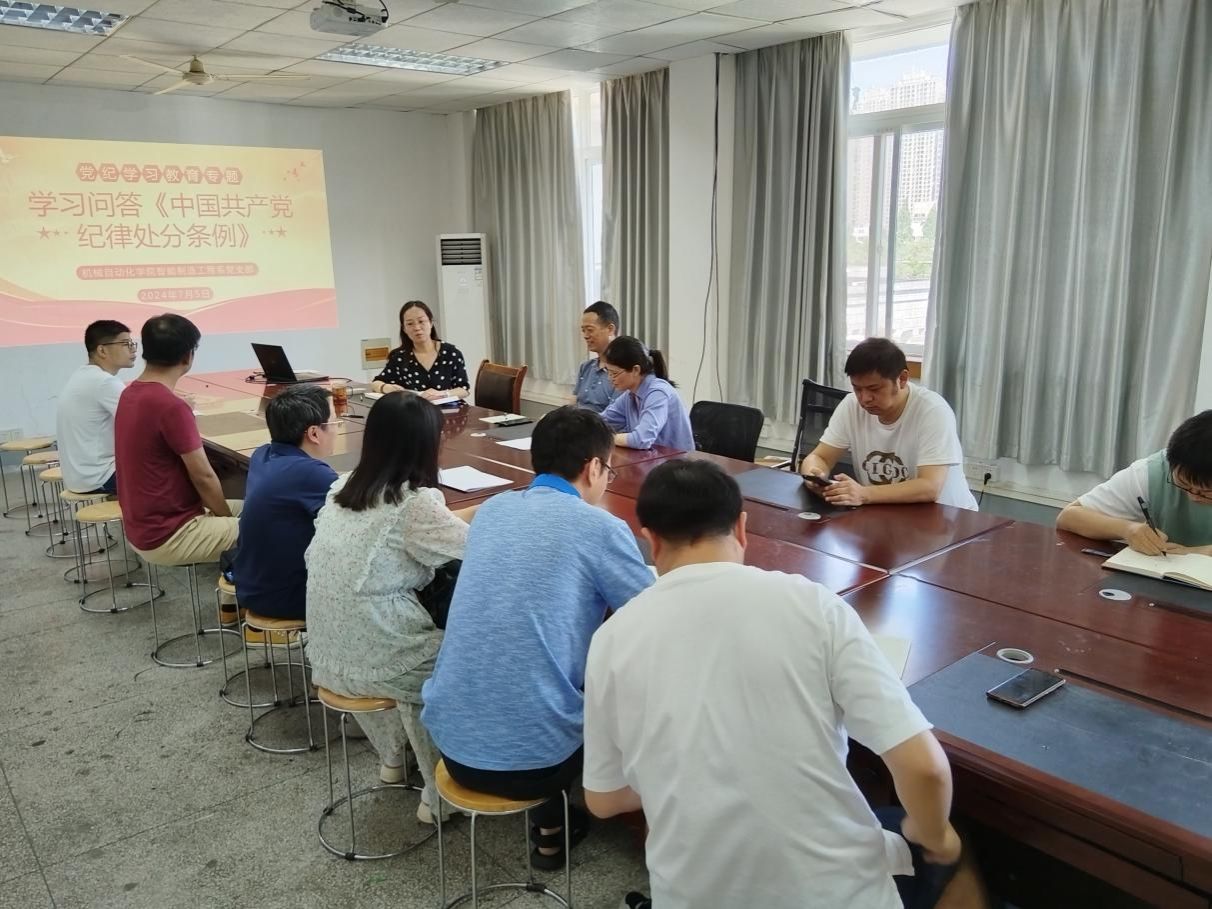 7月4日-5日,机械自动化公司党委书记李婵娟深入机械设计工程系教工党支部、智能制造工程系教工党支部调研指导党支部开展党纪学习教育并为支部讲授纪律党课。
